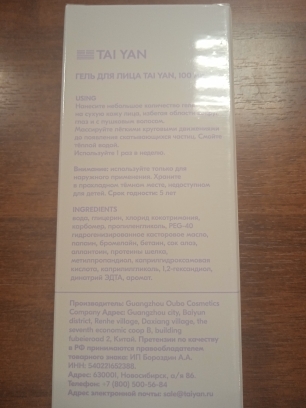 Состав: минеральная вода, морской желатин агар-агар, гиалуроновая кислота, комплекс фруктовых аминокислот, альфа-гидрооксикислоты, витамины А и Е, вытяжка протеины шелка.